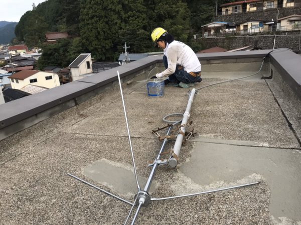 屋上全体の補修が終われば、防水加工を施していきます。