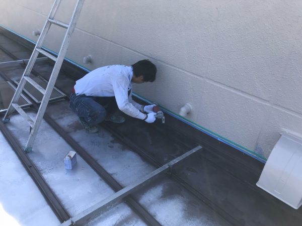 こちらの写真は、ヒビや隙間を埋める「シーリング作業」というものです。